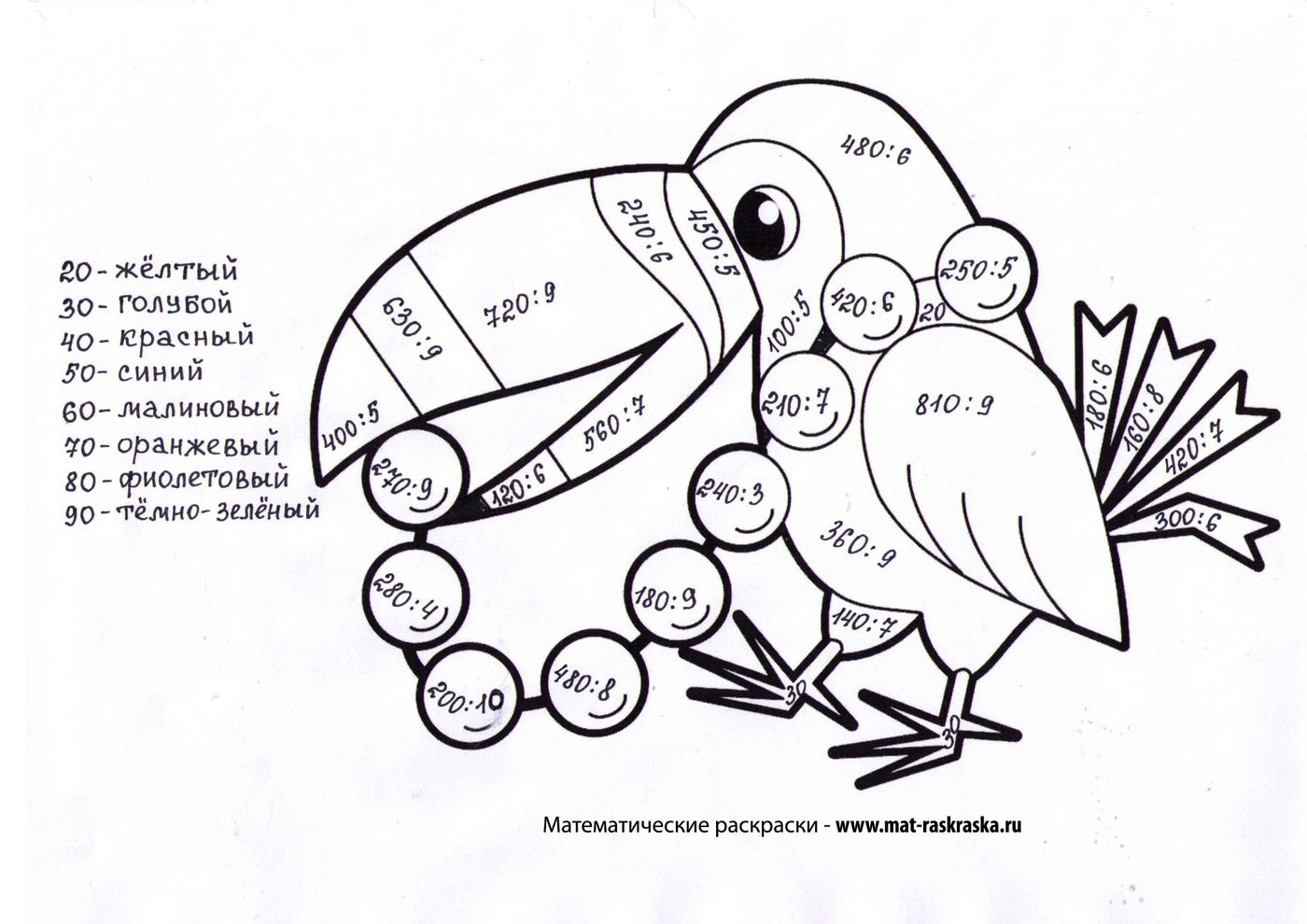 В этом задании-раскраске ребенок должен отгадать, чью шапку держит птичка. Но, как известно, математика – это точная наука, в ней не бывает отгадываний и предположение. Поэтому, тот кто умеет решать примеры – обязательно узнает, кому принадлежит шапка.