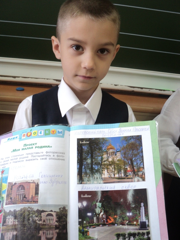 Тема проекта “Моя маленькая родина”, что написать? Ну, я думаю, что сочинения в 1 классе не обязательны, достаточно несколько слов о своем городе или местах, изображенных на фотографиях.