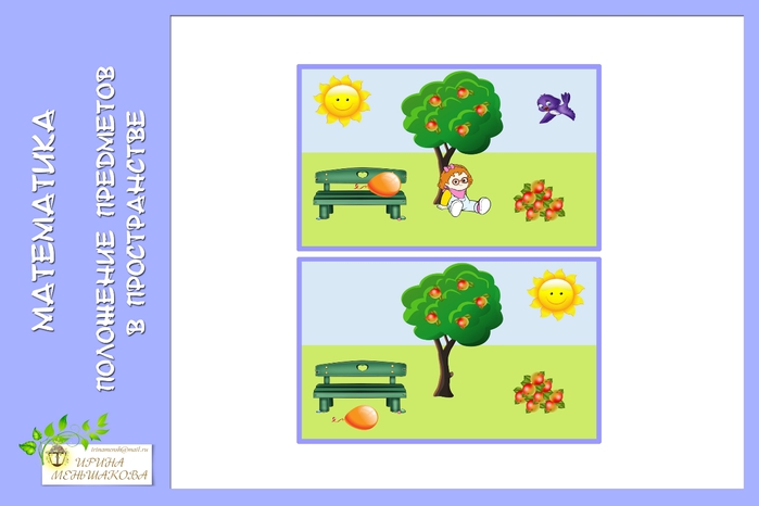 -Слова слева, справа, на, над, под, рядом и т. д. помогают описать положение предметов относительно друг друга. С их помощью вы можете представить, как располагаются предметы в пространстве, даже если не видите их.