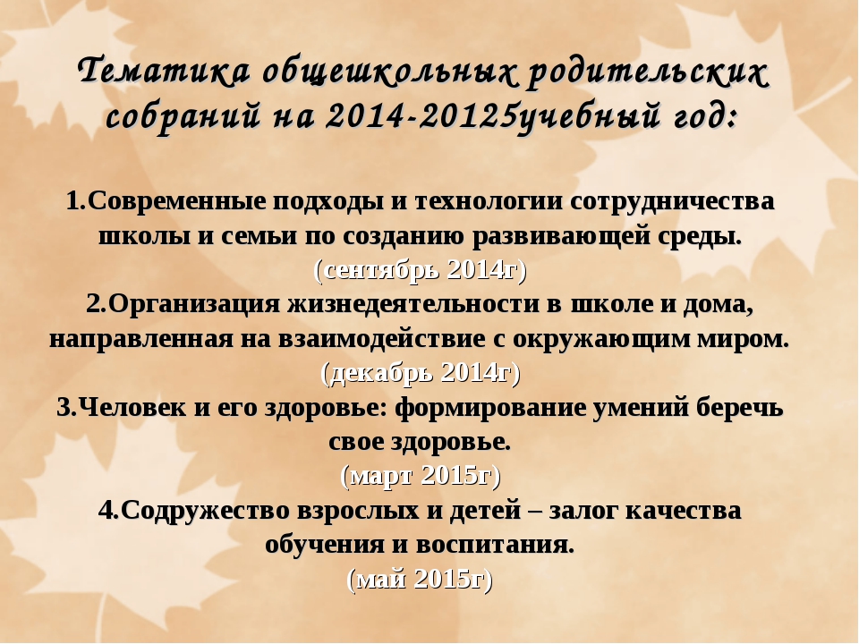 Сроки | Тема собрания |