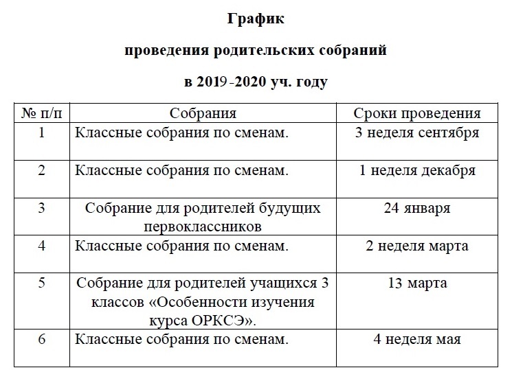 РОДИТЕЛЬСКИХ СОБРАНИЙ