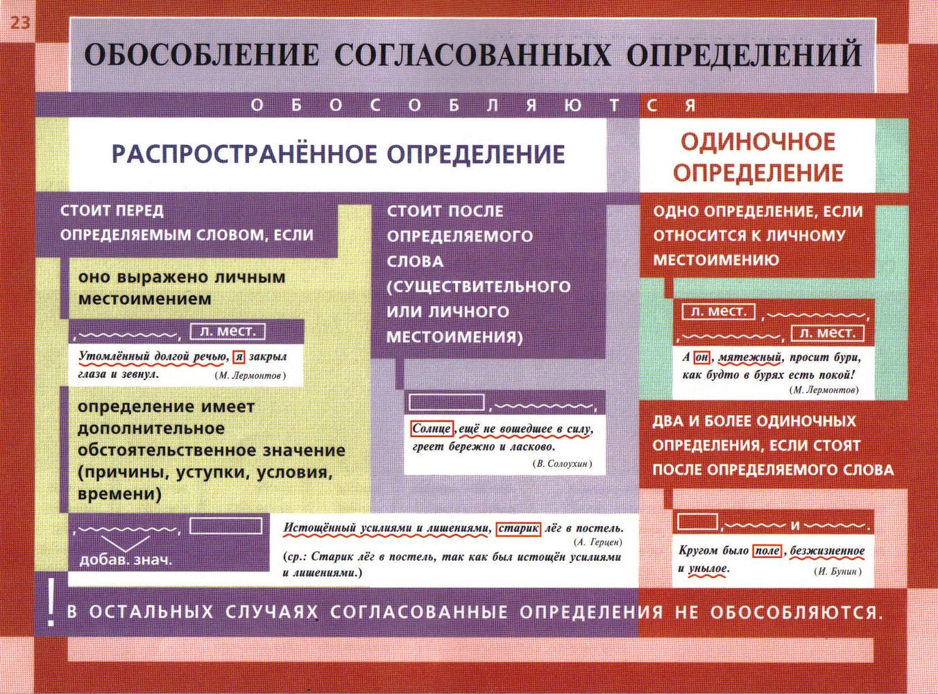 ознакомление учащихся с условиями обособления согласованных определений; формирование у учащихся умений видеть обособленные определения в предложении, правильно ставить знаки препинания при обособленных определениях, интонационно правильно произносить их;