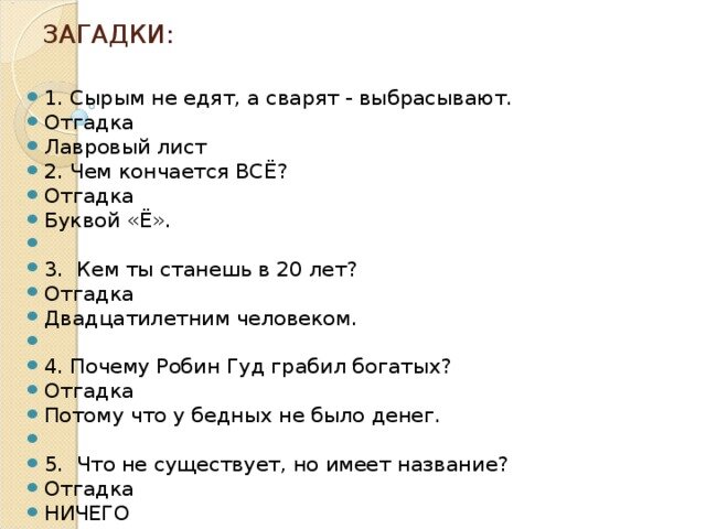 Мышцы живота еще не болят? Надеюсь, вам понравился этот список шуток, головоломок и простых загадок для детей . Специалисты рекомендуют загадки для детей, потому что они помогают улучшить познавательные способности и творческие способности. Эта статья показалась мне интересной, так как я узнал больше о пользе загадок для детей. Они также отлично подходят для длительных поездок на автомобиле.
