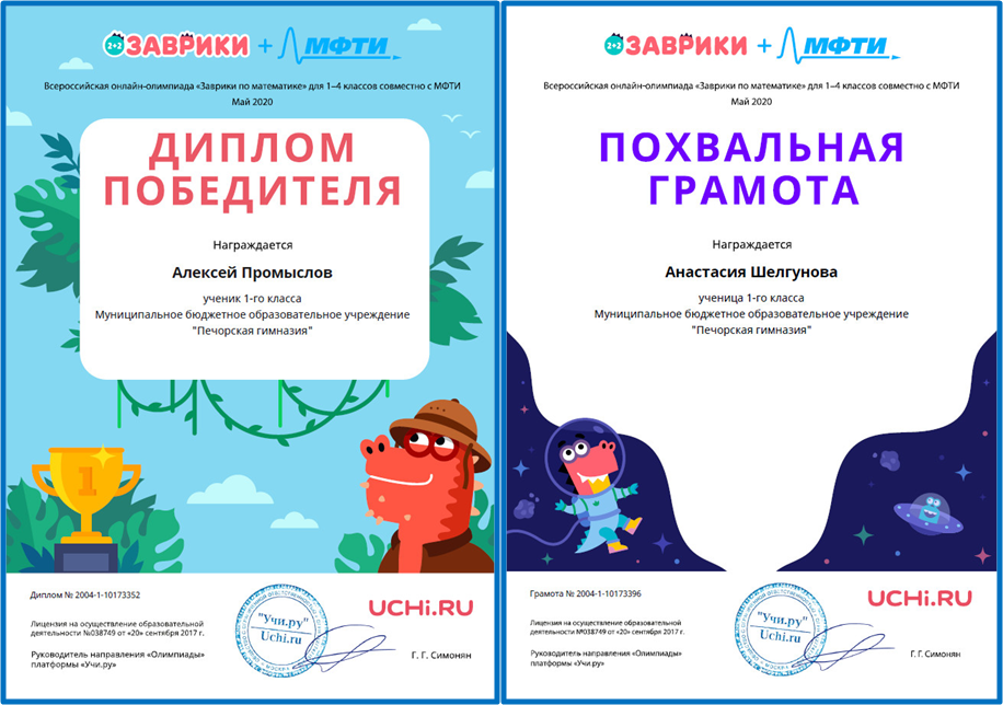 В зависимости от того, как решены задания, каждому участнику дистанционной олимпиады по математике вручается Сертификат или Диплом победителя 1, 2 или 3 степени.