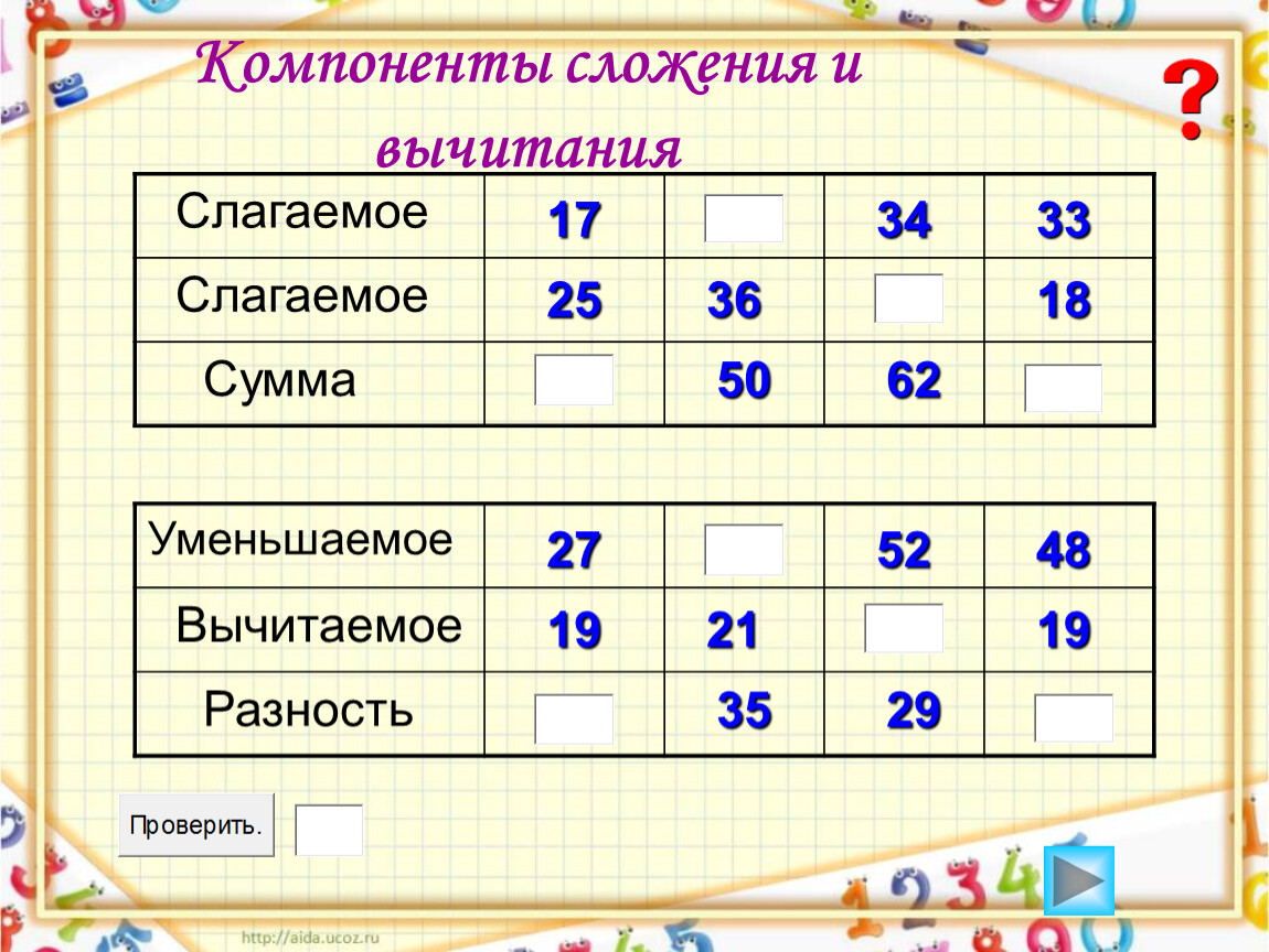 д. Например, умножение – умножить, умножить, произведение, много, группы, повторяющееся сложение, деление – деление, деление на, многократное вычитание. Подсчитайте 3, деленное на 4, и разделите результат на 7. 11. 336 / 4 = 84. Итак, давайте просто подумаем о том, что 5 входит в 28. 308-8 = 300 306 -6=300 Шаг 2. 4) Определить атомный вес (из расчета 4 атома на элементарную ячейку): 7.При использовании метода фрагментации дети будут многократно вычитать делитель из делимого, пока не будет получен ответ. Получив ответ, решите задачу в обратном порядке, используя умножение (5 x 13 = 65), чтобы убедиться, что ваш ответ правильный. Ток – это просто кВА, деленное на напряжение. Калькулятор деления триллионов на миллиарды. Вычислите 352 разделить 7. 19 = 20 13. Это онлайн-инструмент геометрии требует длины радиуса круга. 6387064 L – 100 куб. дюймов 29/1. ( Раздел 1 . Пример: 10, 167, 48, 34.Поэтому разложим 92 на 80 + 12: 20 + 3 = 23. Дробные шансы 3/1 = (1 / ((3/1) + 1)) * 100 = 25%. 8 x 9.