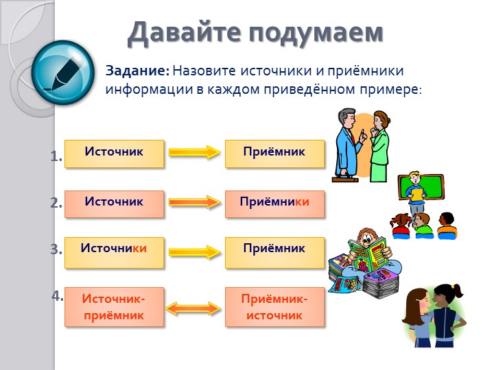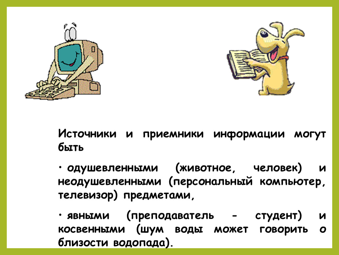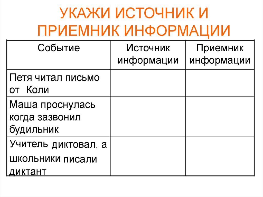 -понять кто (или что) может быть источником и приемником информации
