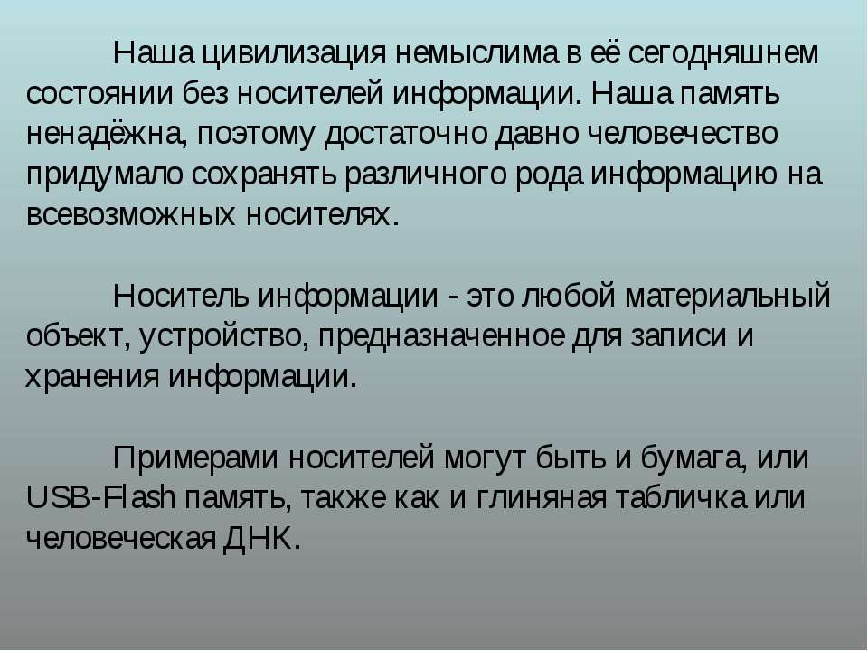 Вопрос: Как вы понимаете понятие «Носитель информации»?