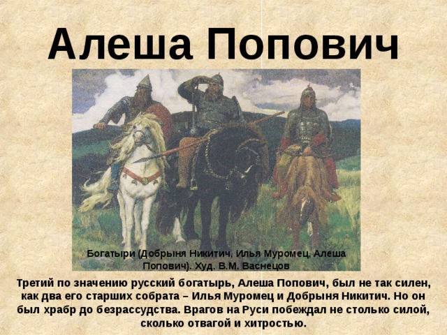 Кто справа от Ильи Муромца? (Алёша Попович. Он самый молодой из этих богатырей).