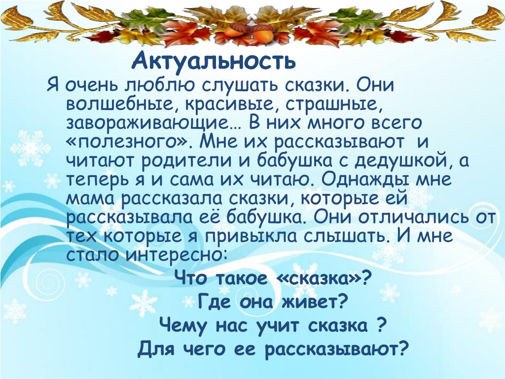 Гипотеза. Предполагаем, что изучение раздела поможет сочинить собственную сказку.