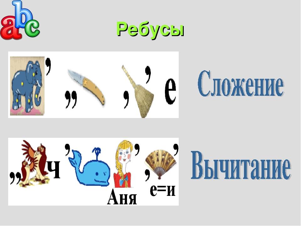 3. Следует учитывать возрастные особенности детей: ребусы с буквами требуют умения учащихся абстрагироваться, выполнять в уме большую часть вычислительных операций.