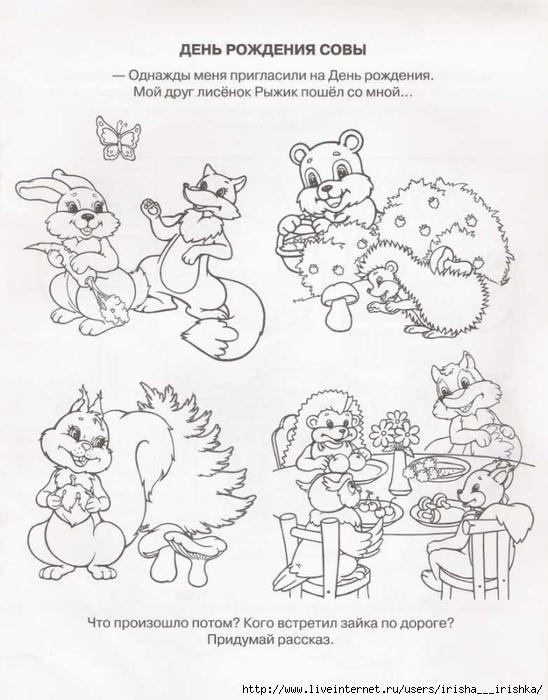 Книга знакомит детей с жителями леса: белкой, волком, зайцем, лисой и медведем.