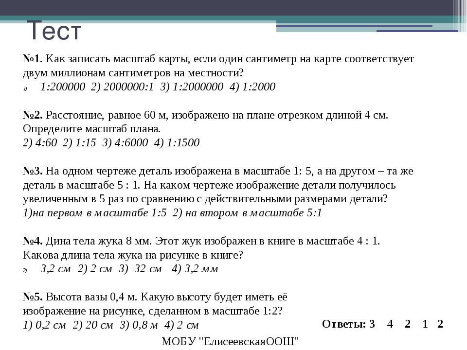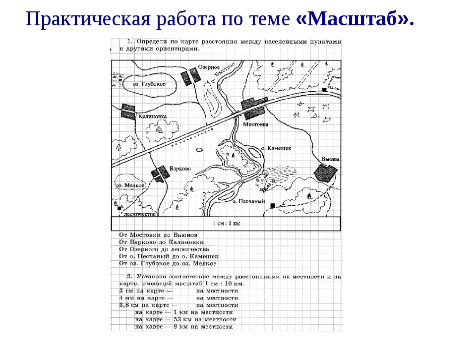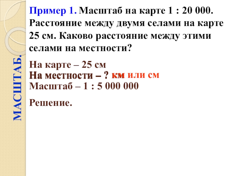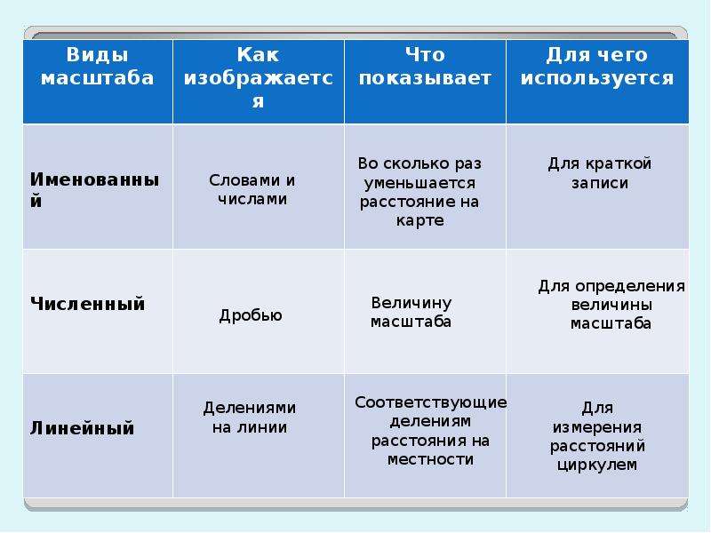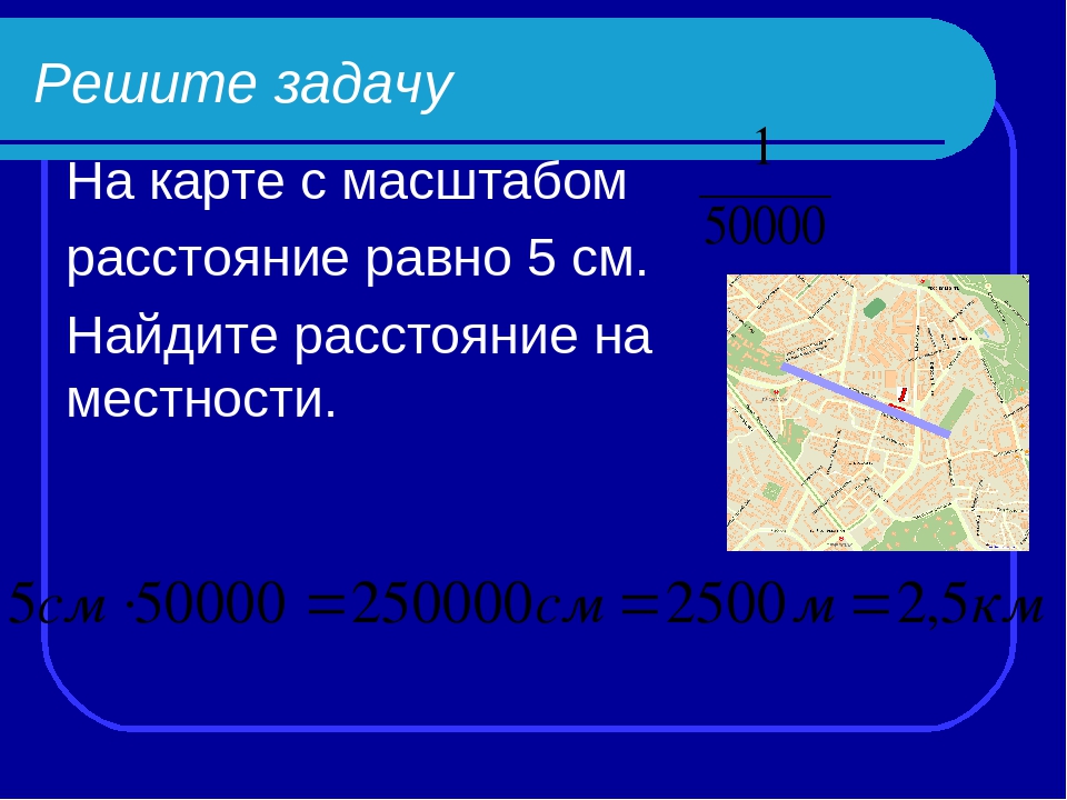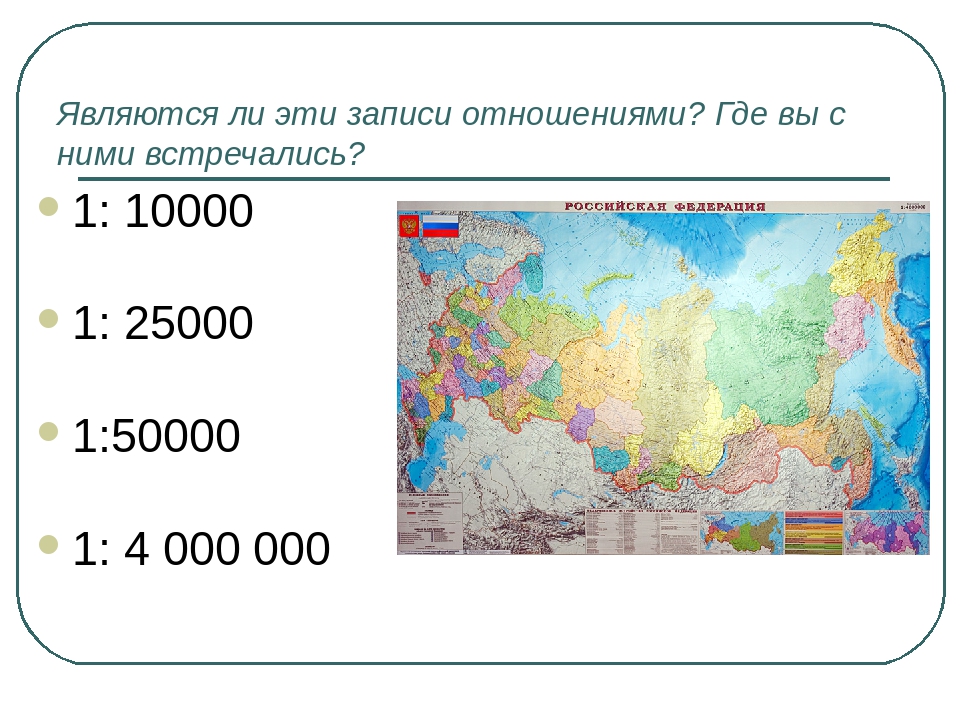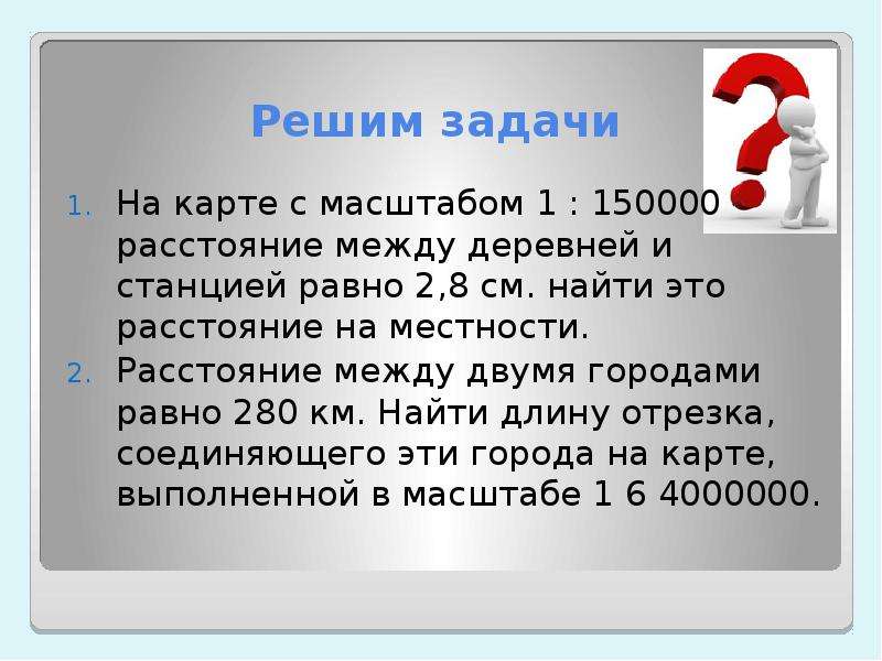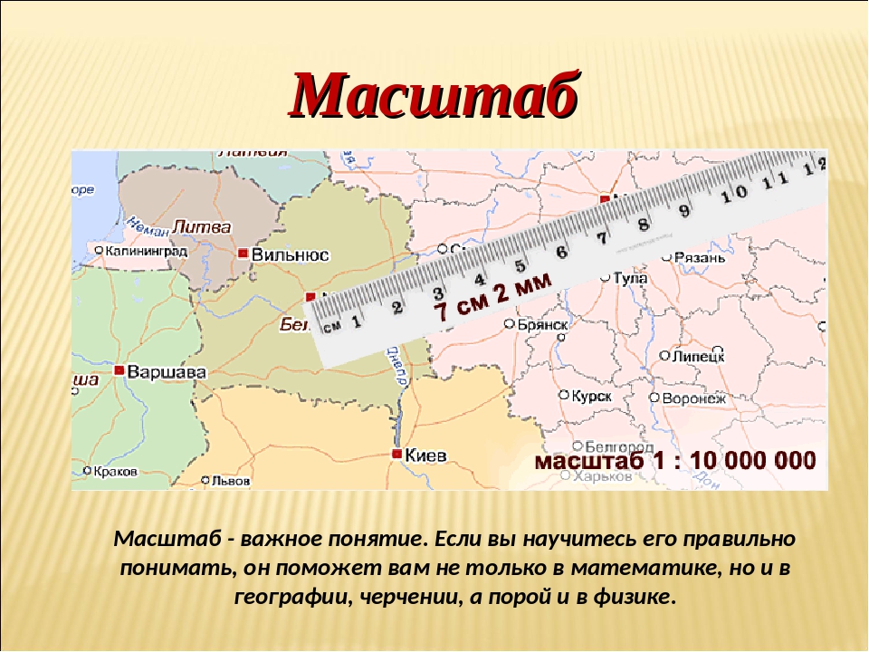 Масштаб – это отношение длины отрезка на карте к длине соответствующего отрезка на местности.