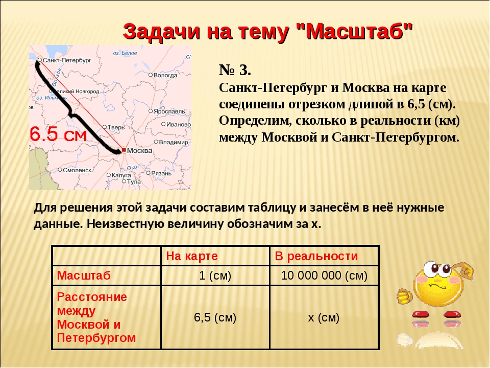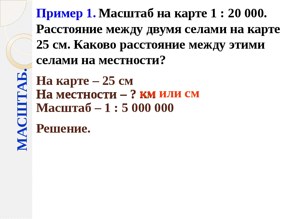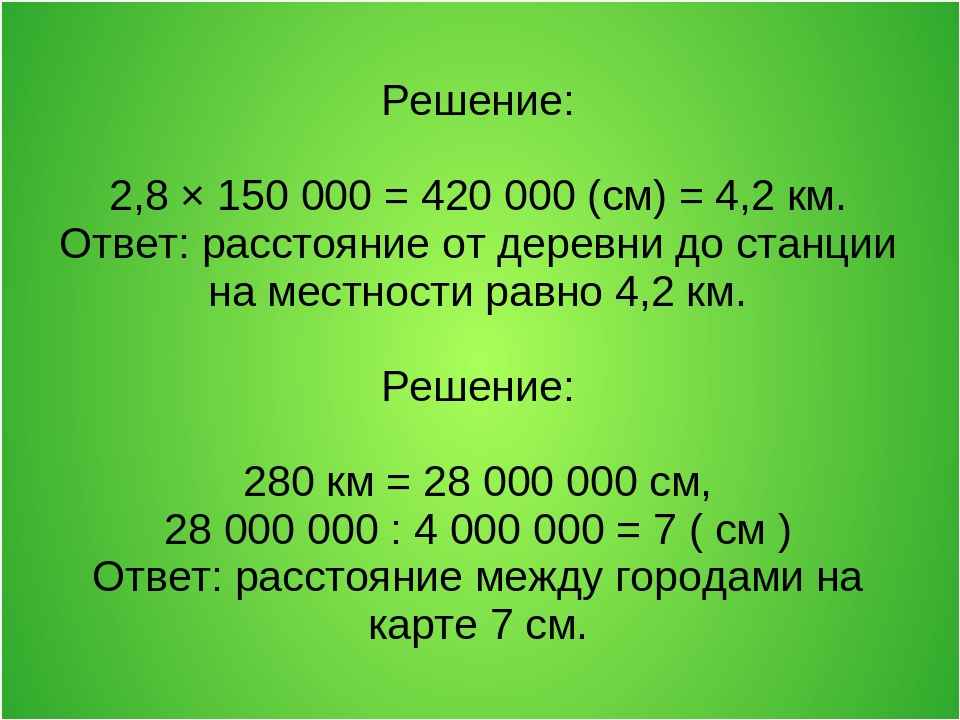 Расстояние между двумя городами равно 150 км. Определите расстояние между изображениями этих городов на карте при трёх разных масштабах карты.