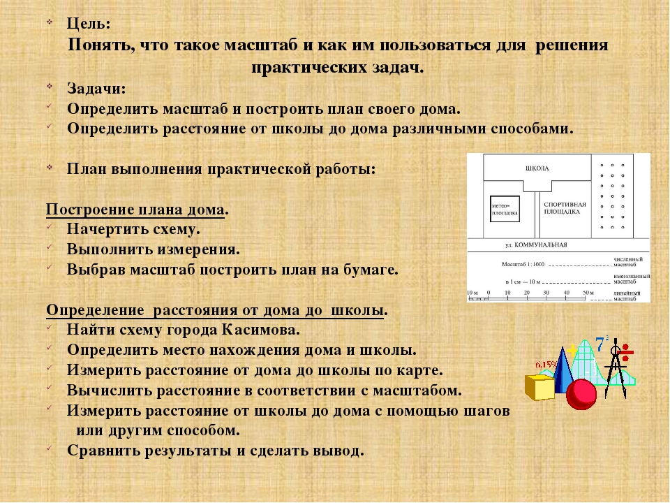 – образовательная: научить учащихся читать, определять масштаб; рассмотреть решение основных задач на масштаб; показать практическое применение понятия масштаба.