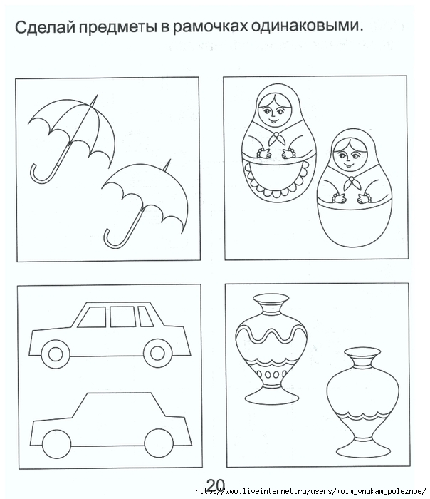 Простое задание на определение предметов. Распечатайте изображение в формате А4 и предоставьте дошкольнику вместе с цветными карандашами.