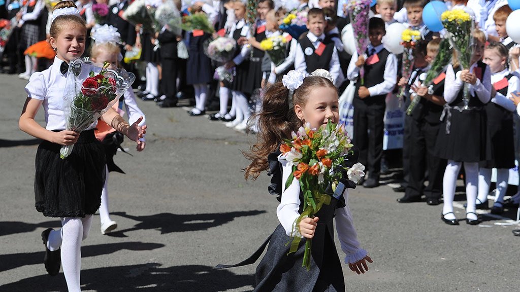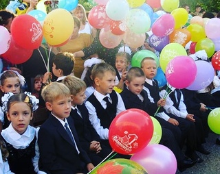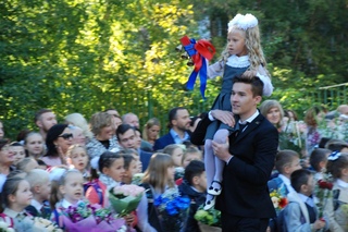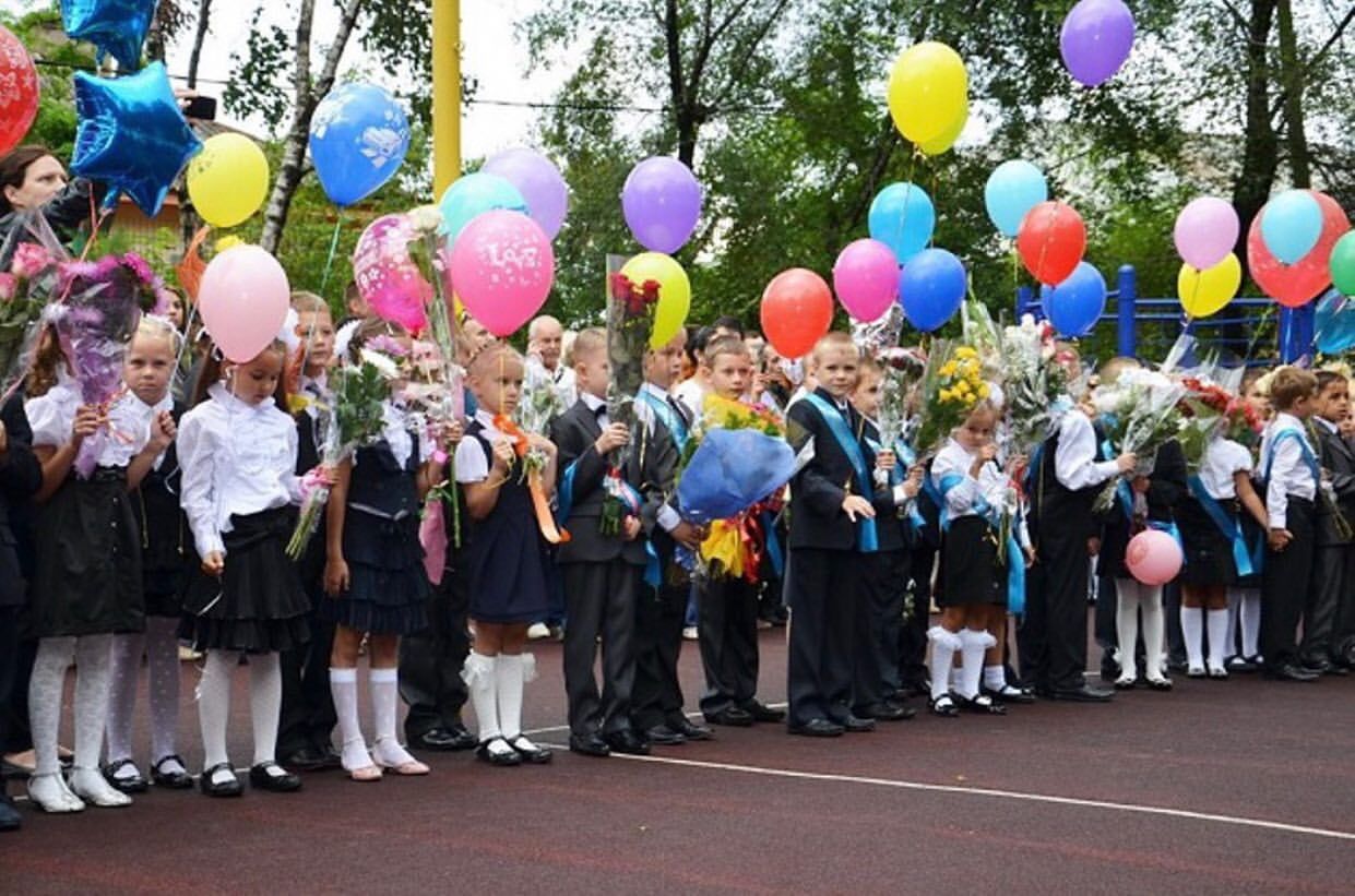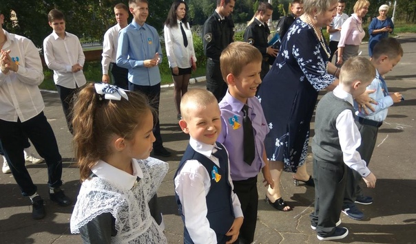 Во дворе школы звучит музыка. Классы выстраиваются на линейку.