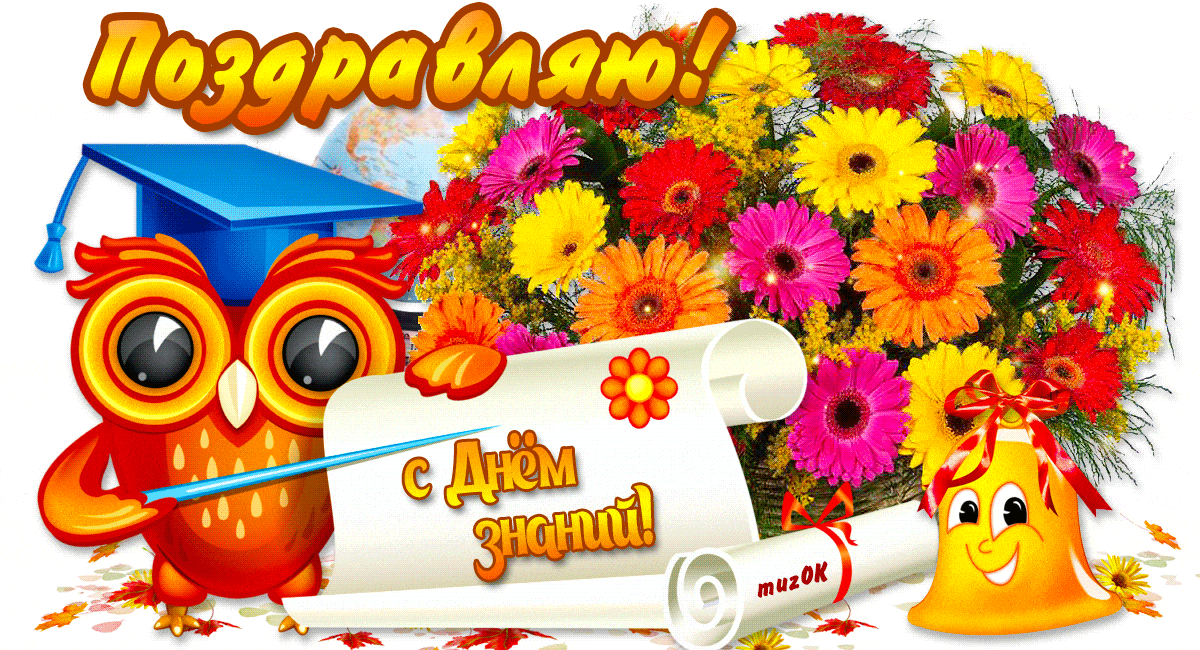 Ведущая: С Днем знаний поздравляем вас, друзья! (хором)