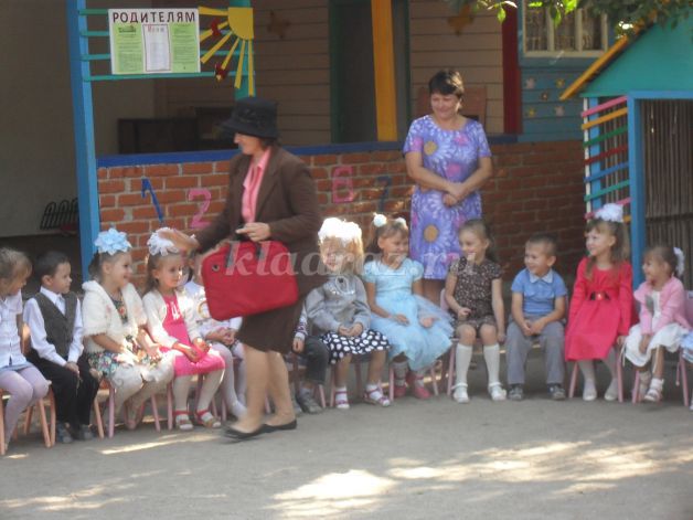 Ты пришла на праздник в детский сад «Солнышко». Сегодня мы отмечаем очень важный праздник – день знаний. Дети учатся считать, стихи читать, танцевать, лепить и рисовать, учатся природу понимать и здоровье укреплять, а потом пойдут в первый класс, в школу и станут первоклассниками.