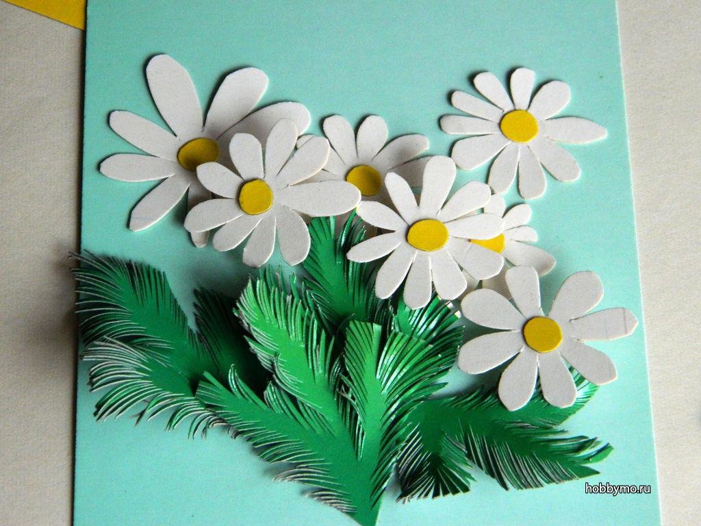 Порадовать близких скромным букетом из полевых цветов можно в любое время года. Подарите им аппликацию «Ромашки»!