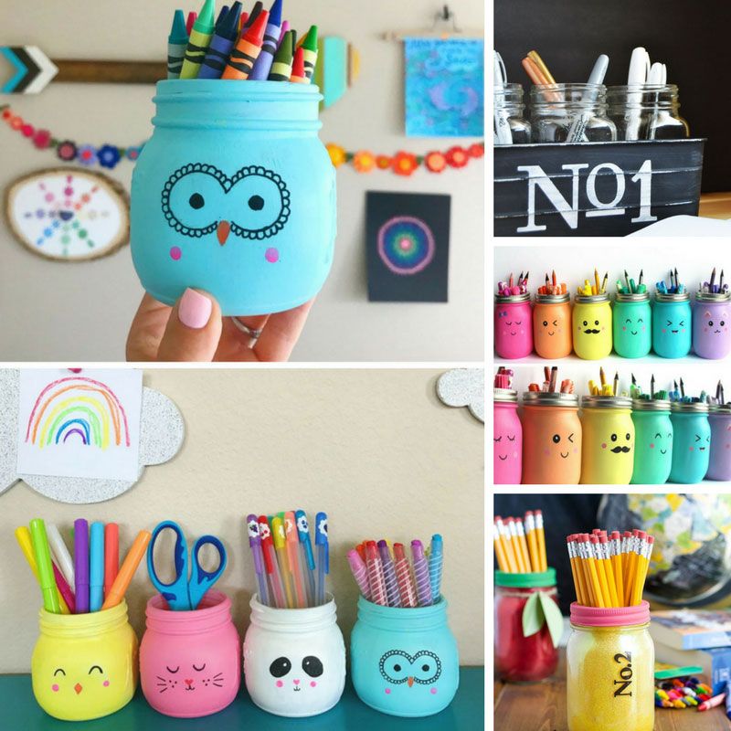 Превратить стеклянные баночки подходящих размеров в емкости для хранения цветных карандашей проще простого.