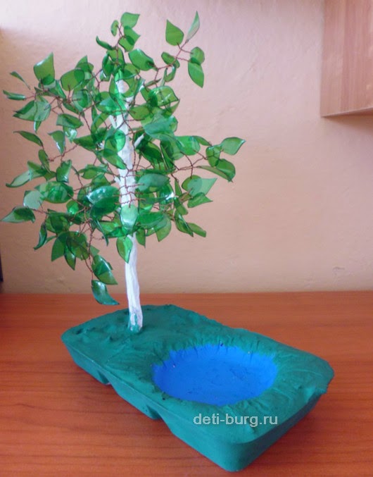 Праздничная березка из пластиковых бутылокКрасавица береза. Пожалуй, в русской душе уже на уровне подсознания заложена нежность и сентиментальность по отношению к ней, и чувство ностальгии, когда человек находится за пределами Родины. Воспетая в народных песнях и стихах поэтов, она прочно вошла в восприятие, как один из негласных символов России. Да и как можно оставаться равнодушным к ее неброской, но чистой и светлой красоте? А березовый сок, который мы все обожаем с детства, и ждем с нетерпением весны, чтобы снова напиться этой небесной свежести? Оду березе можно сочинять бесконечно, но тематика нашей статьи совсем не об этом. В ней мы рассматриваем варианты поделок из бумаги. Казалось бы, какая связь? Ответим – самая прямая. Мы предлагаем Вам сделать, собственно, березу из бумаги. Эта поделка подойдет как вариант для детского творчества, либо как фрагмент декорации для спектакля в детском саду или начальной школе. Все зависит от размера поделки и цели, которую Вы перед собой ставите.