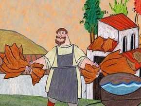 От всего Никита отказывается, взял себе только хлеба краюху да луковку и пошёл в Кожевенную слободу бычьи кожи мять.