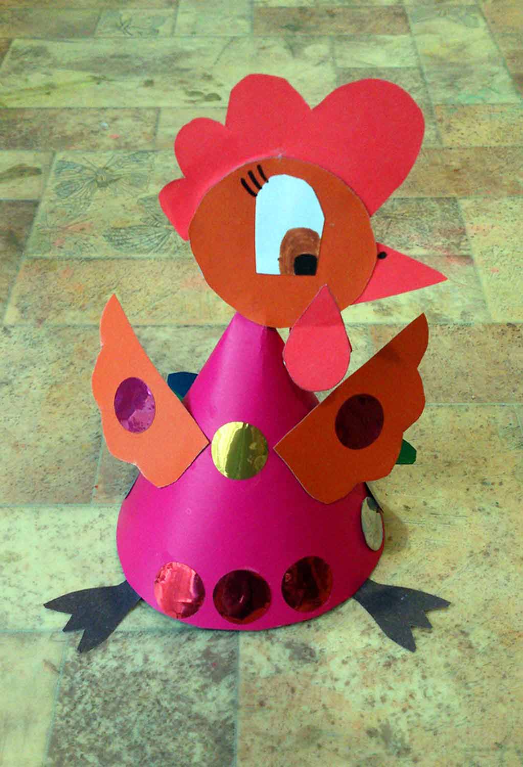 Лист бумаги или картона размером 30х45 см свернуть в форме конуса, обрезать лишнюю бумагу, а края склеить вместе. Для того чтобы изделие лучше держалось на голове, необходимо прикрепить к нему ленту или резинку, пробив с обеих сторон в нижней части конуса дырки. Украсить на свое усмотрение колпак можно гофрированной бумагой, стразами или различными фигурками, вырезанными из цветной бумаги.