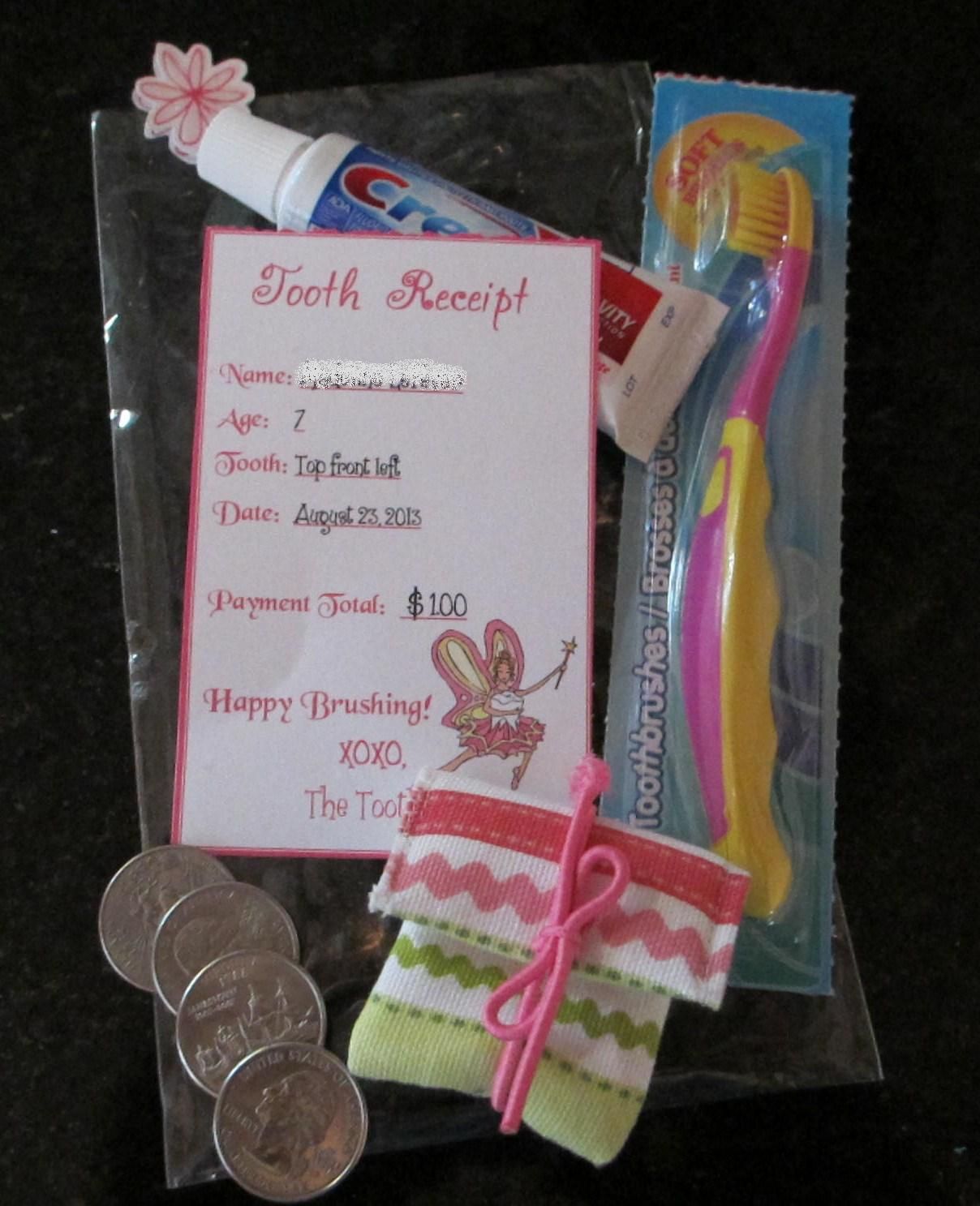 Этот небольшой документ можно оставить в спальне вашего ребенка на память о событии. Купите блокнот для квитанций и распишите его самостоятельно — или скачайте нашу версию! Укажите имя вашего ребенка, дату, описание полученного зуба и награду, а также небольшую заметку, например: «Спасибо за этот прекрасный зуб! Я вижу, что ты чистишь зубы каждый день.Продолжайте хорошую работу!”