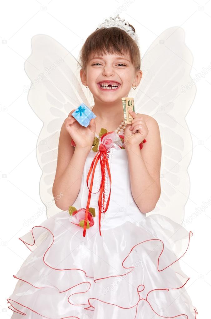 Так как же сегодня выглядит американская традиция Зубной феи? Когда у детей начинают выпадать молочные зубы, они кладут выпавший зуб под подушку в надежде, что появится Зубная фея и обменяет этот зуб на немного денег. Несколько лет назад под подушкой могла быть оставлена небольшая монета, но благодаря инфляции Зубная фея в наши дни оставляет доллары.