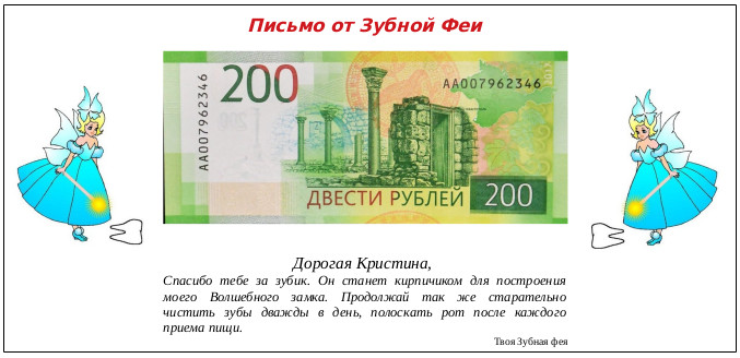 Добрая зубная фея осталась жива и невредима и до сих пор продолжает дарить малышам радость и монетки.