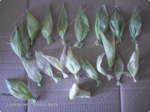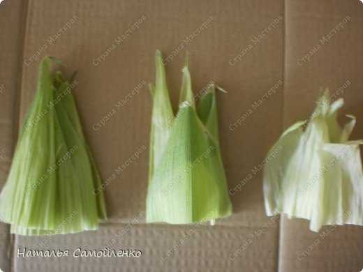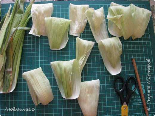 Теперь о цветах из листьев кукурузы. С чего начать?