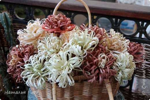 А вот по такому же принципу сделаны цветы, но с серединкой из сухих кукурузных ядер: