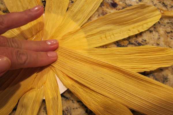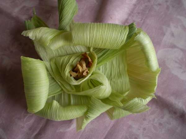 Но, к сожалению, лист кукурузного початка высыхает очень быстро, деформируется, т.е. результат абсолютно непредсказуем, поэтому для декоративных целей его использует в сухом состоянии. А еще лучше обвертку слегка проварить и уже потом высушить.