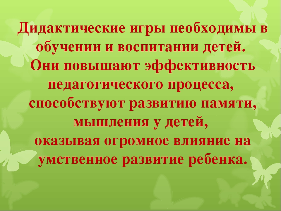 Дидактическая игра – такая деятельность, смысл и цель которой дать детям определенные знания и навыки, развитие умственных способностей. Дидактические игры – это игры, предназначенные для обучения.