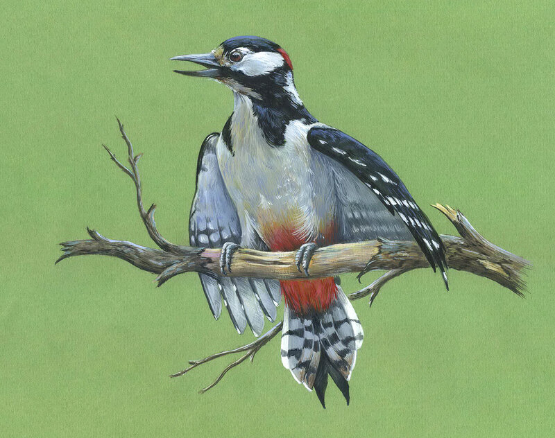 Я же для самообразования и закрепления темы не только раскрашу ,но и нарисую ещё одного дятла: