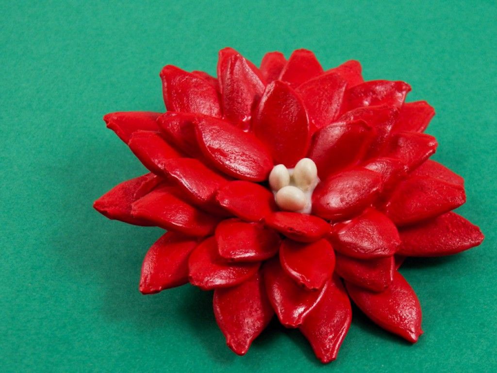 Используйте иглу и проволоку, чтобы проткнуть дырочки и связать пять тыквенных семечек острыми концами, чтобы получился цветок. Оберните лишнюю проволоку вокруг проволоки для серег, и у вас будут сезонные цветочные серьги для этого особенного человека! Приклейте к центру крошечные бисеринки, чтобы добавить сияния и завершить образ.