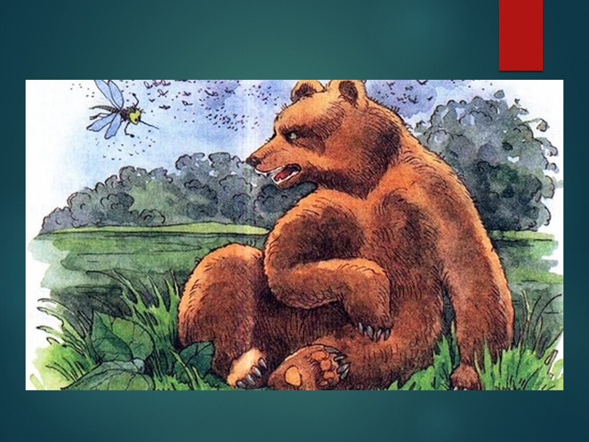 А Комар Комарович вьётся над самым медвежьим ухом и пищит: