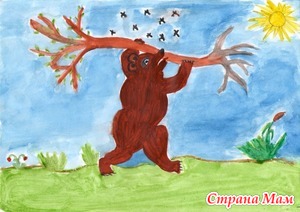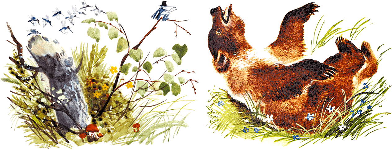– Ну, я так и говорил: умер бедняга со страху! – хвастался Комар Комарович. – Даже жаль немножко, вой какой здоровый медведище.
