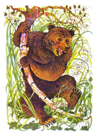 Опять полетел Комар Комарович и впился медведю прямо в глаз. Заревел медведь от боли, хватил себя лапой по морде, и опять в лапе ничего, только чуть глаз себе не вырвал когтем.
