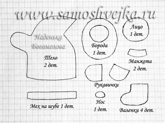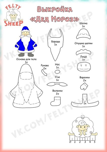 Дед Мороз из фетра своими руками выкройки в натуральную величину здесь