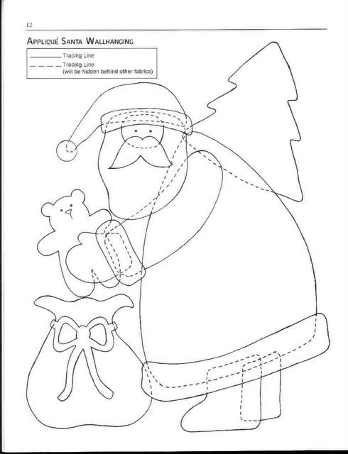 Вот крупные шаблоны для аппликаций, где Дед Мороз изображен в компании с разными новогодними атрибутами — подарками, елками, оленями.