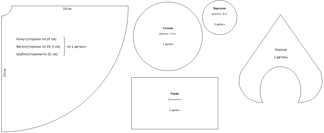 Размеры выбирай на свое усмотрение, но помните, что они должны соответствовать друг другу. Нужную выкройку конуса легко найти в интернете.