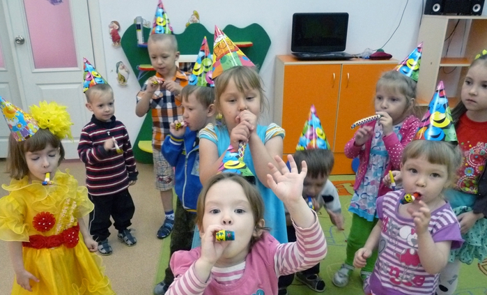 Развлечение рассчитано на всех детей группы. Они объединяются в две команды по своему желанию (например: зимние + весенние именинники, летние + осенние именинники).