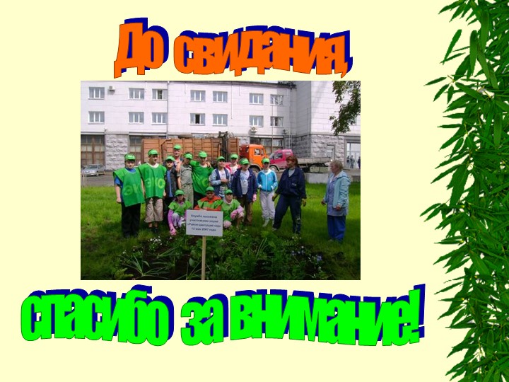 А главный экологический девиз на все времена таков: “Живите так, чтобы следующие поколения могли с гордостью за предков сказать сердечное спасибо за чистоту окружающей среды!”