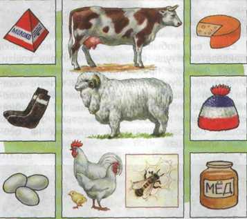 * Животные дают человеку мясо, жир, молоко, кожу, яйца, пух, перья, шерсть, мед, воск, лекарства, охраняют жильё. Животных человек использует как транспортное средство. Человек получает радость от общения с животными).