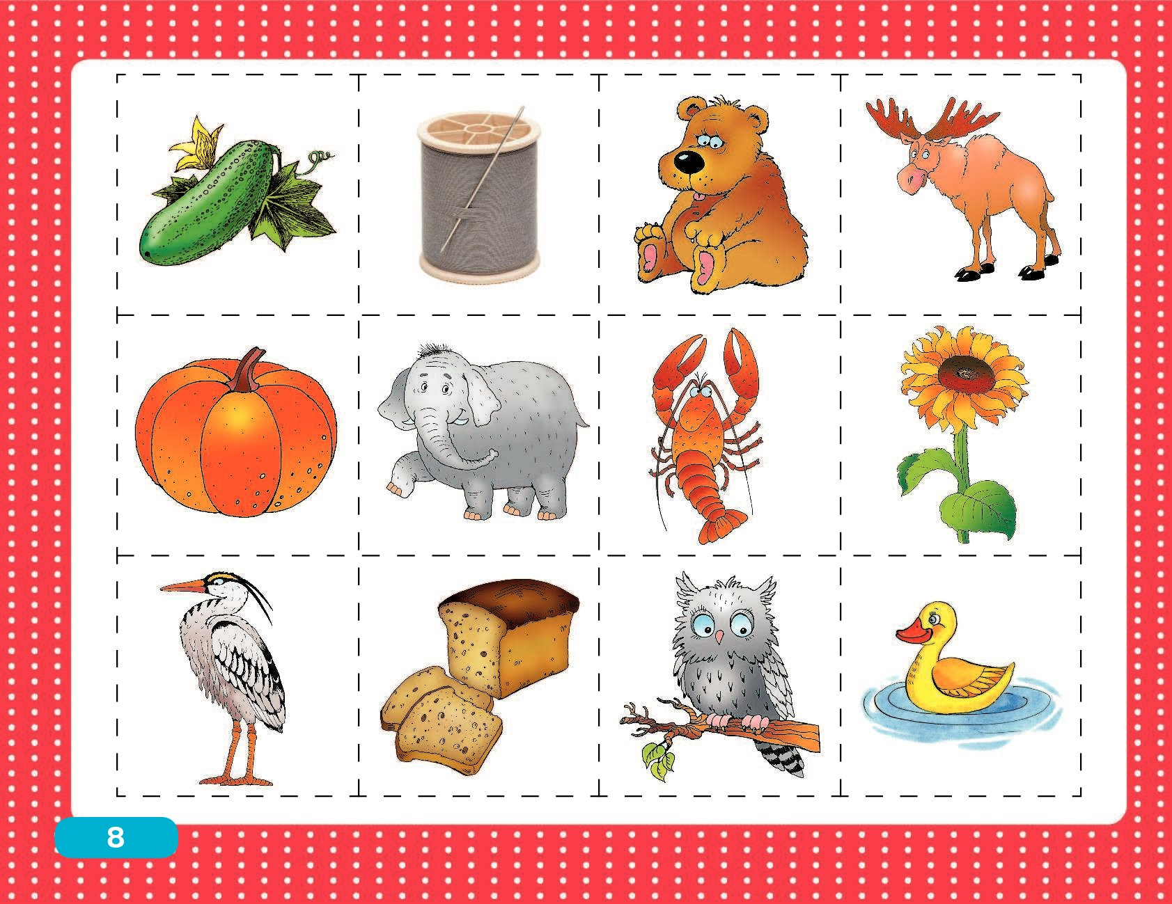 Распечатайте различные картинки на компьютер. Разрежьте их так, чтобы у картинки не хватало какой-либо детали. Например: у машины не хватало колеса, у дома крыши, у цветочка – листочка и
