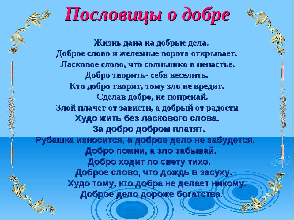 Пословицы про добро подчеркивают значимость таких понятий как отзывчивость, неравнодушие и милосердие.