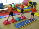Задачи: обучение прыжкам вверх на месте с целью достать предмет; закрепление ползания на средних четвереньках по скамейке; упражняться в ходьбе и беге по кругу.