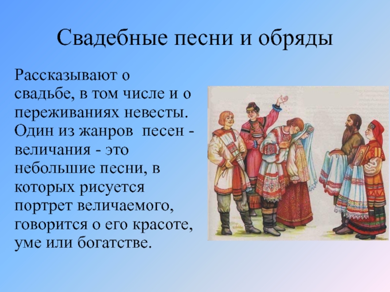 Кроме былин, в программе хора всегда были веселые, танцевальные, шуточные шутовские песни, ведущие из искусства бродячих скоморохов-музыкантов, и протяжные лирические песни, которые певцы исполняли в трогательно-душевной манере.