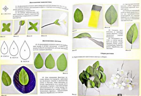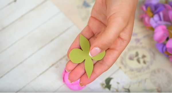 9. Перед сборкой цветка вырежьте листочки на зеленом фоамиране.
